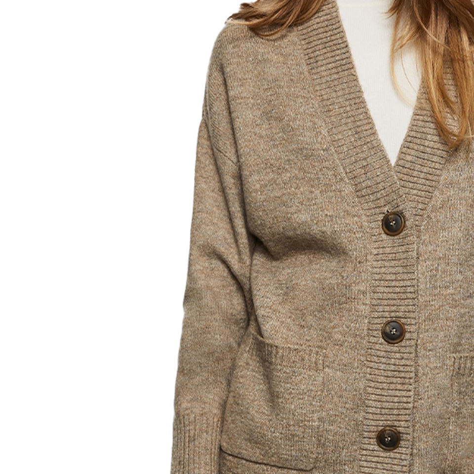 Oversized Soft Knit Button-up Beige Women's Cardigan High Quality Wool Blend with Ribbed Hem Drop Shoulder for Winter Sweater
