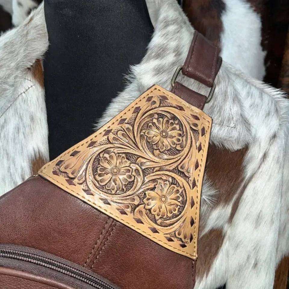 High Quality Best Selling Large Tooled Cowhide Sling Bag Satchel Crossbody Handbag Gift for Man and Woman Wholesale Manufacturer