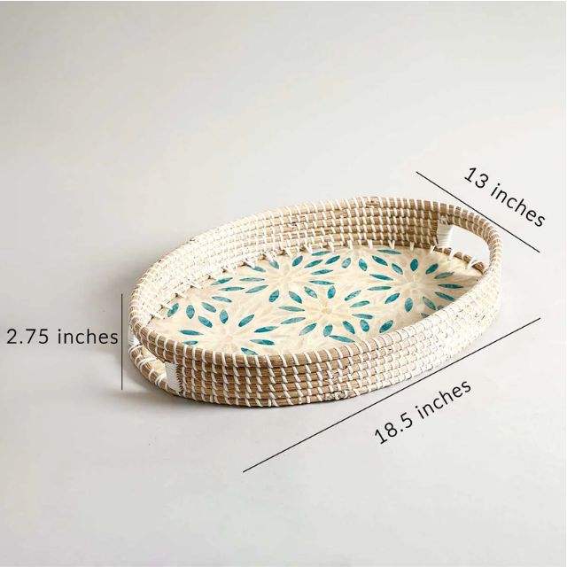 High Quality Best Selling Newest Collection of Rattan MOP Inlay Oval Serving Tray for Table Coffee Made in Vietnam Factory