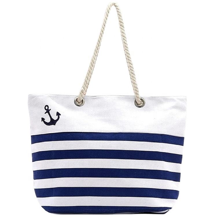 High Quality Black Anchor Print Custom Canvas Beach Bag with Personalized Logo Screen-Printed Return Gift
