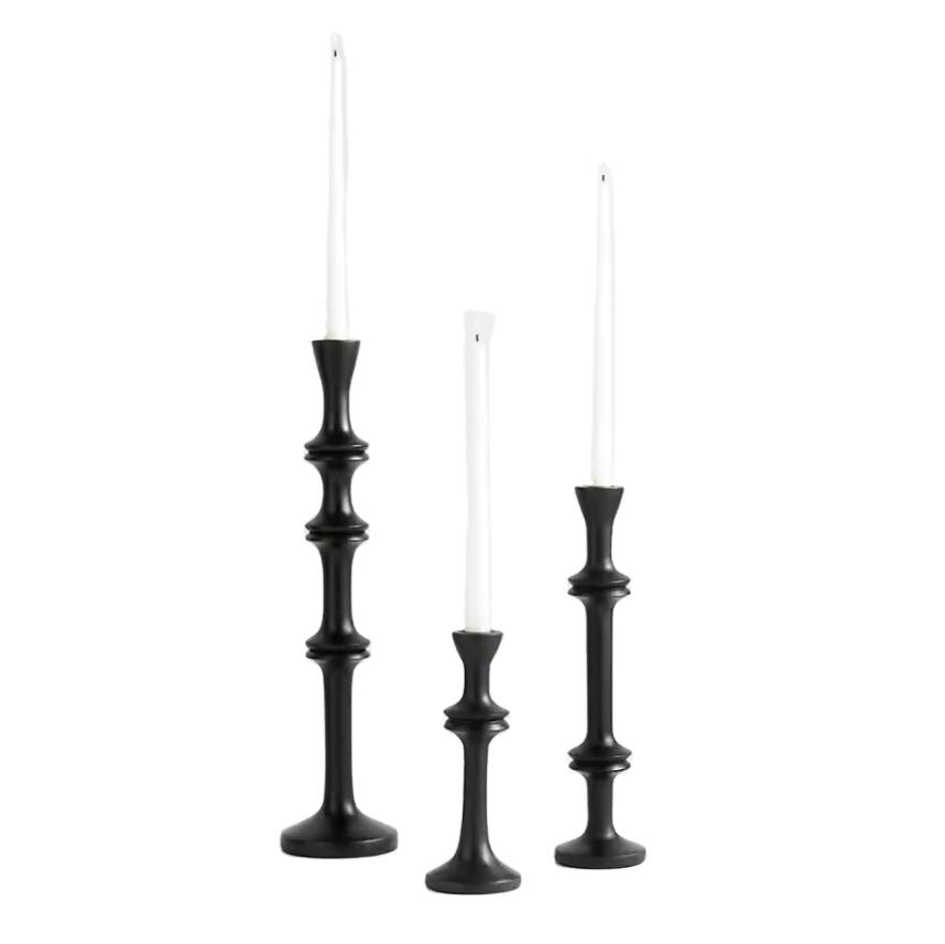 High Quality Black Coloured Rustic Wood Candle Stand Pillar Eco-Friendly Centrepiece for Christmas Hot Selling Candle Holders