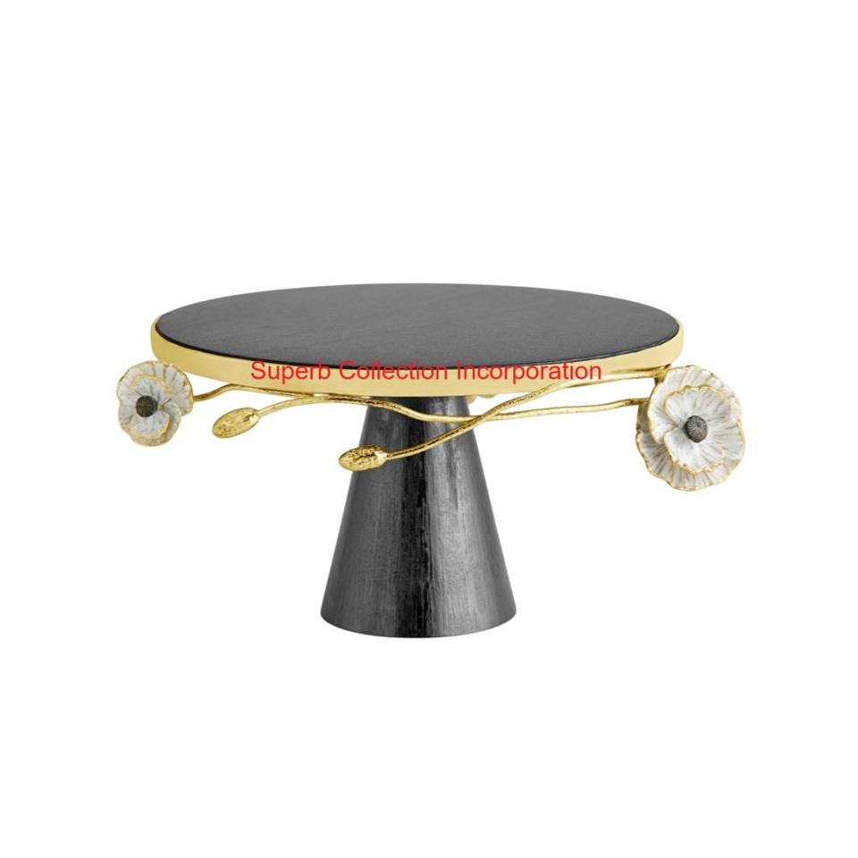 High Quality Black Marble & Gold Finish Metal Dessert Display Platter For Wedding & Party Decor Handcrafted Cake Serving Stand