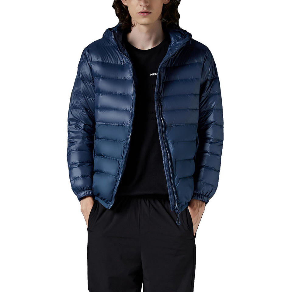 High Quality Black Hooded Puffer Jacket for Men High Street Canvas Waterproof Winter with Front Logo
