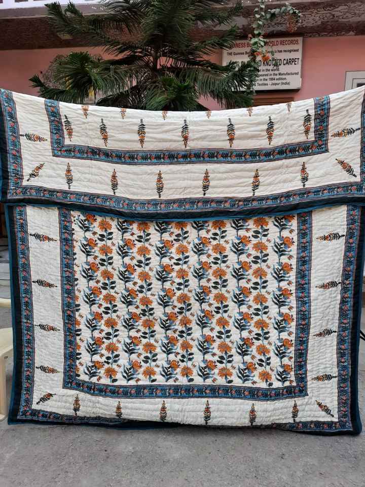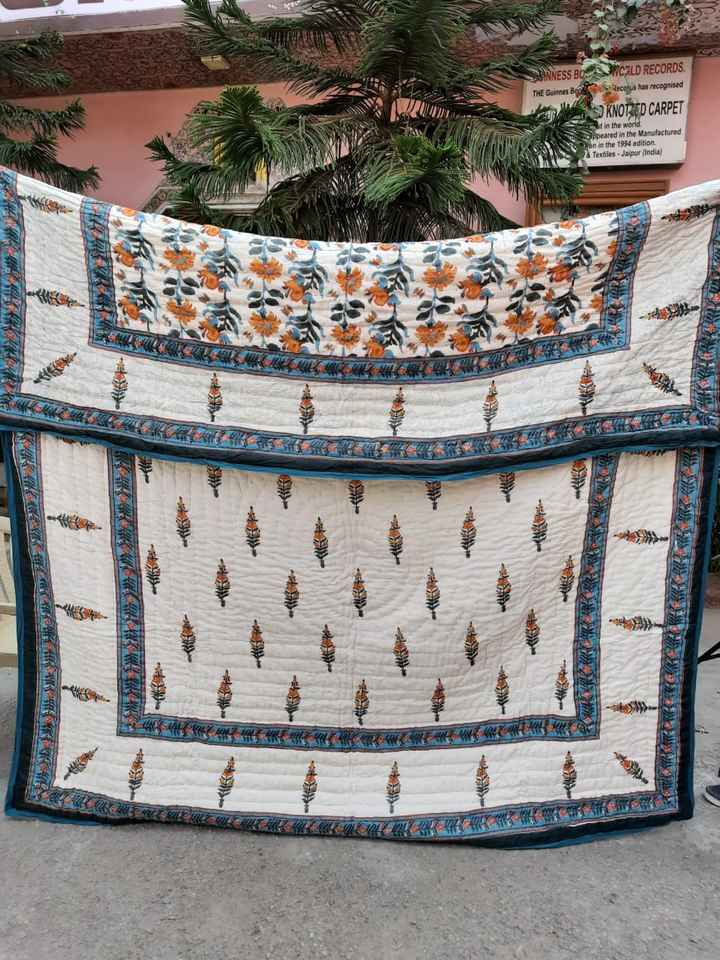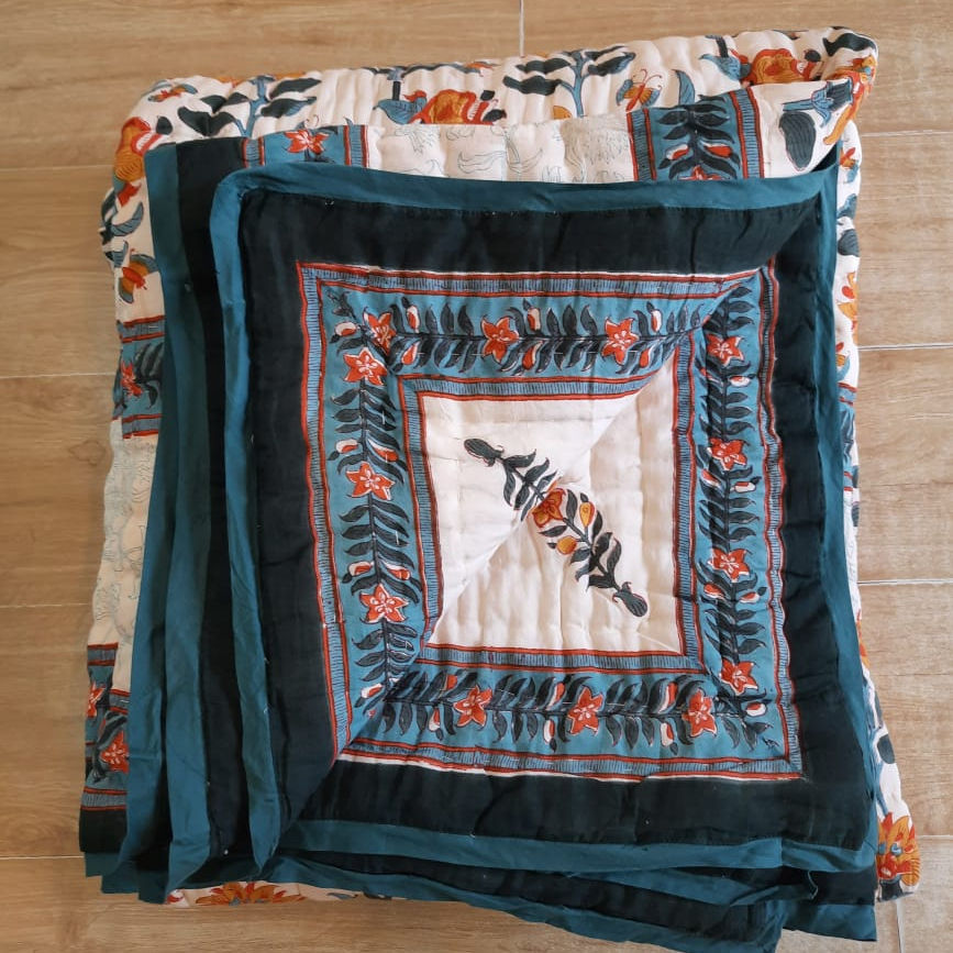 High Quality Block Printed Fabric Blankets Cotton Quilted, Reversible Twin Size Comforter Quilt Winter Warm Home Bedding Blanket