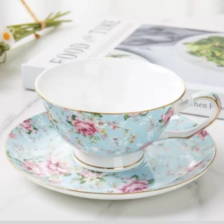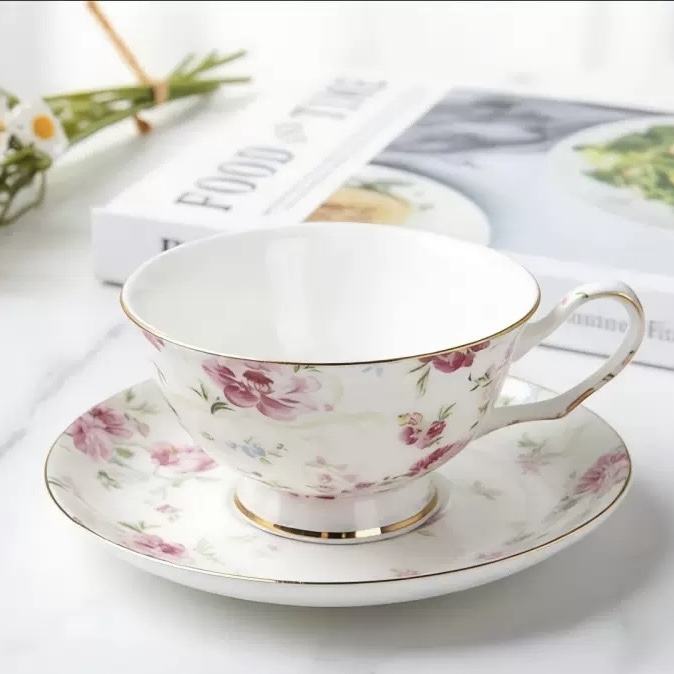 High Quality Blooming Floral Pattern Bone China Coffee Cup and Saucer set