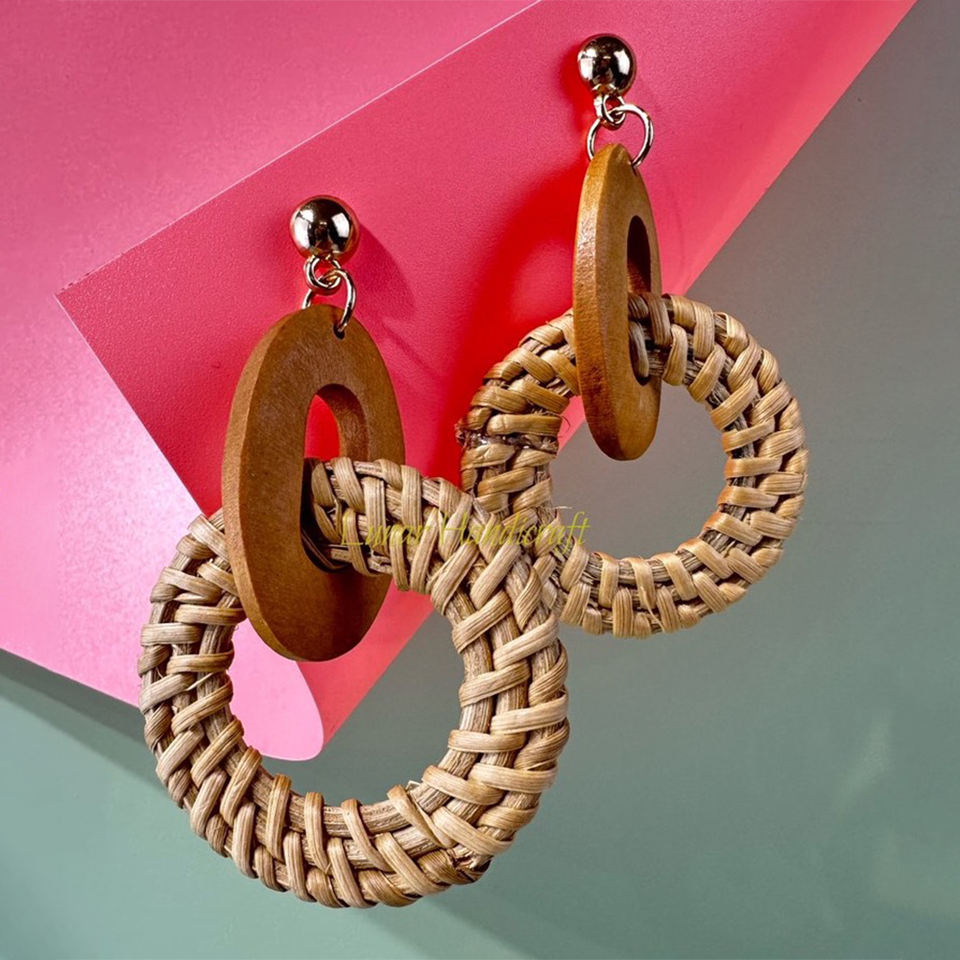 High Quality Boho Ethnic Style Geometric Round Hoop Rattan Earrings for Women Fashion Jewelry From Vietnam