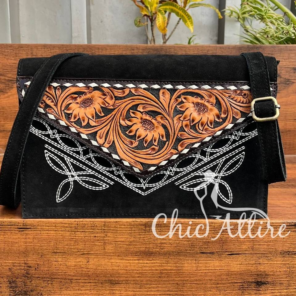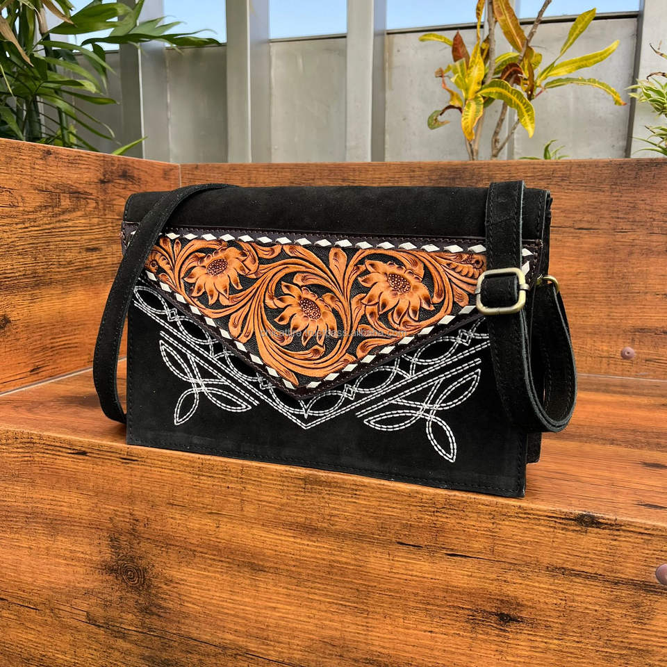 Product name:Hand Tooled Suede Leather Crossbody Envelope Bag