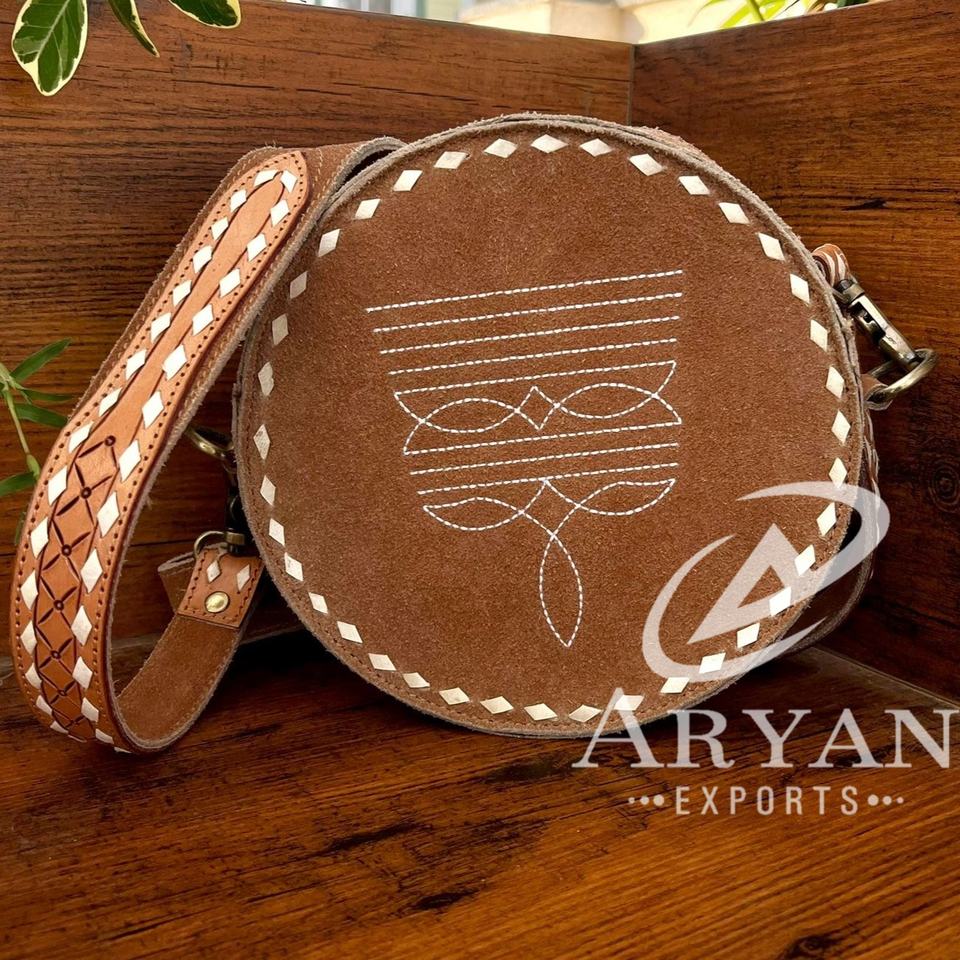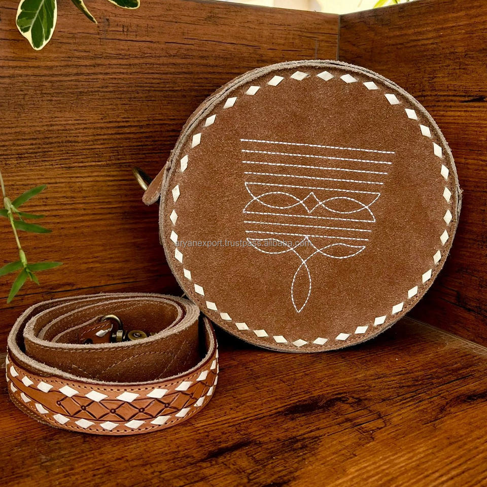 Boot Stich Suede Leather Western Style New Designer Round Crossbody Bag Handbag Hot Selling Bohemian Women Shoulder Handbags