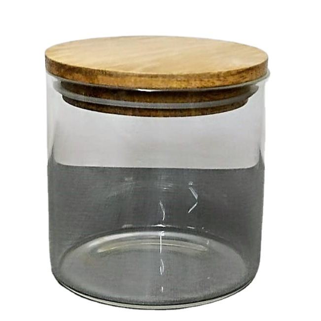 High Quality Borosilicate Glass Jar with Wooden Lid 450ml 600ml 750ml 1000ml 1200ml for Kitchen & Storage Use