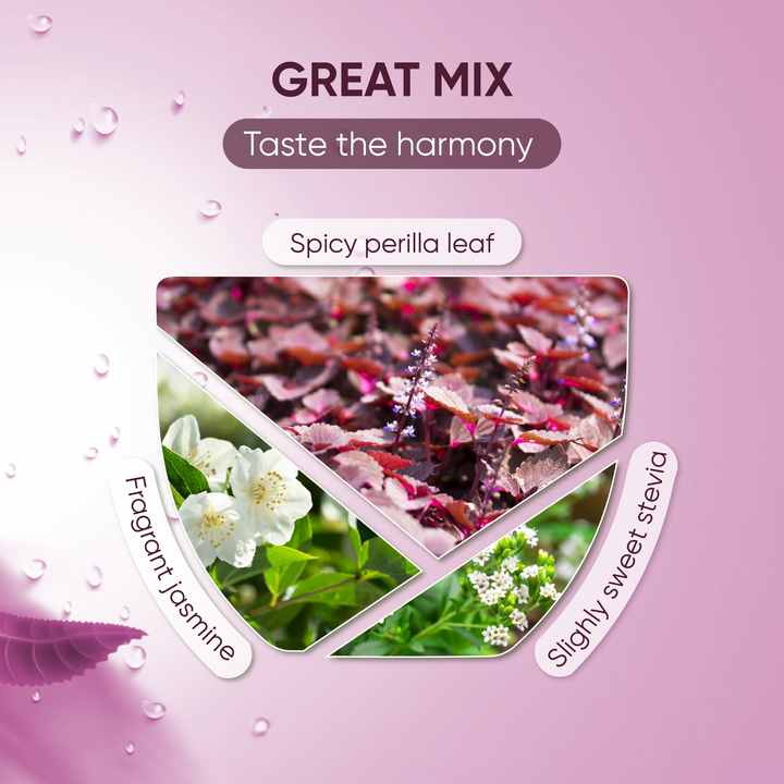 75.99% Purple perilla; 24% Jasmine; 0.01% SteviaIngredients
