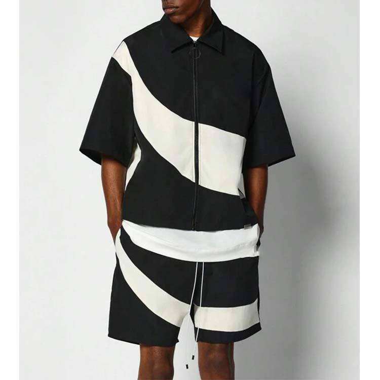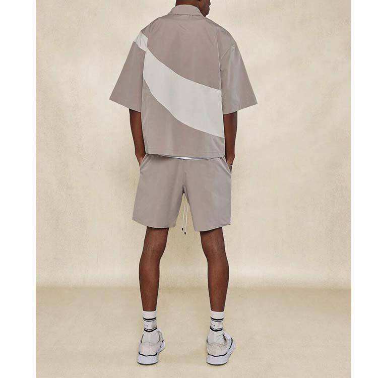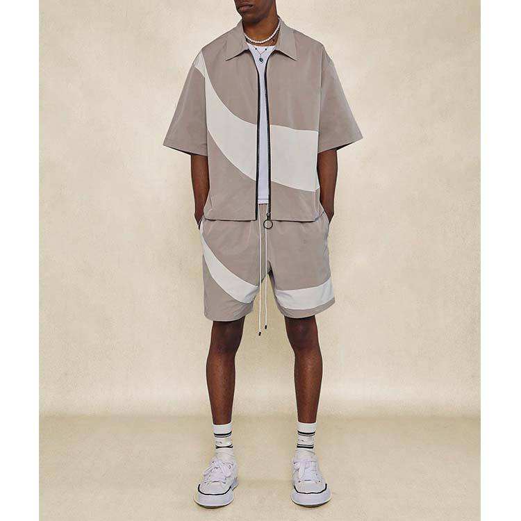 High Quality Boxy Fit Zip up Colour Blocked Nylon Polyester Shirt Short 2 Piece Set Man windbreaker Shorts Set