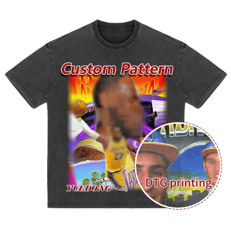 High Quality Boxy Streetwear Mineral Vintage Printed Men Custom Graphic Cotton Oversized Heavyweight Acidic Wash Washed Tshirt