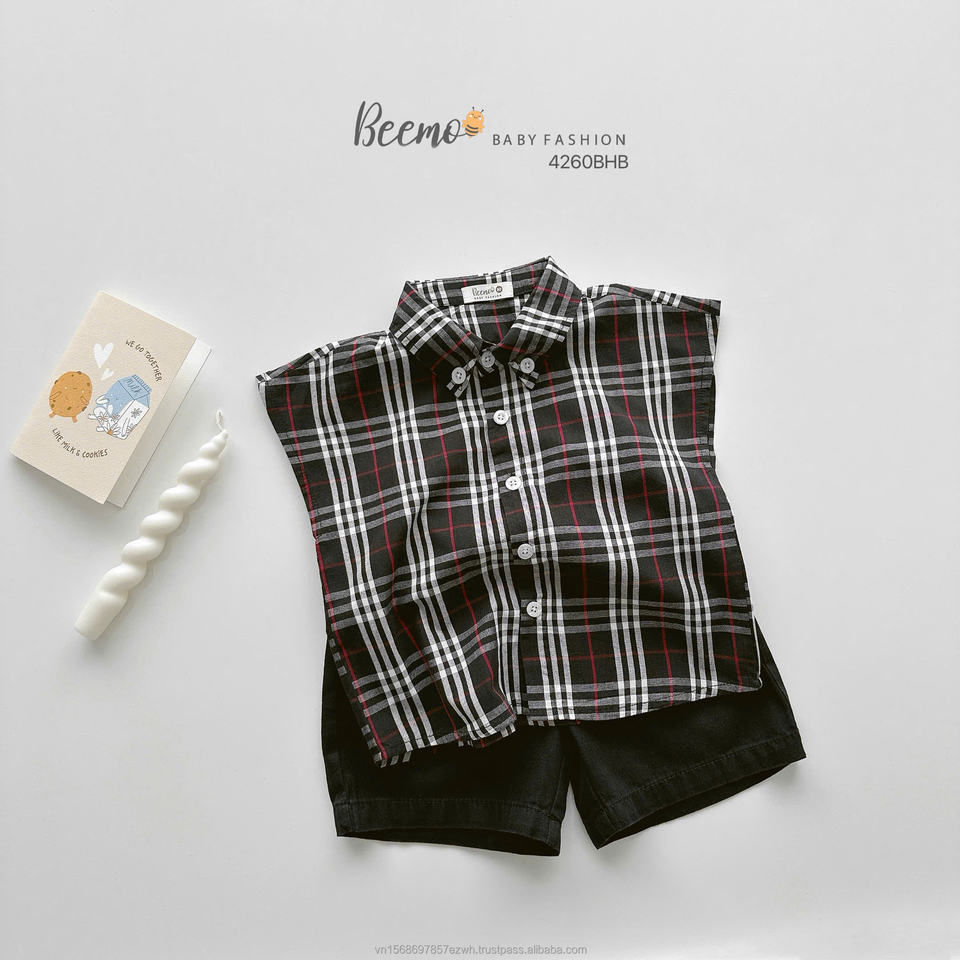 High Quality Boys Clothing Set Gentleman Print Plaid Shirt Short Sleeve Shorts Casual Street Outfits for Parties Formal Events