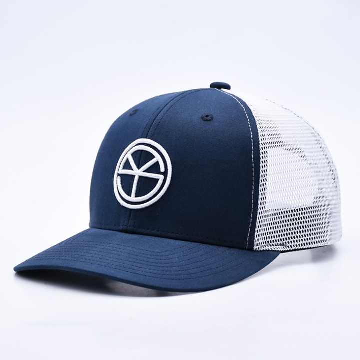 High Quality Brand Styles 3d Embroidered 112 Trucker Cap Custom 6 Panel Blue White Richardson Mesh Trucker Hats
