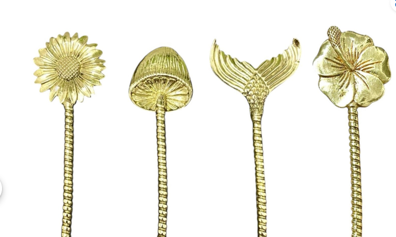 High Quality Brass metal Customized Design Tea Spoon Set of 4 Pieces With Ribbed Handle and Mirror Polish With Food Safe Lacquer