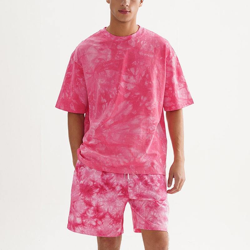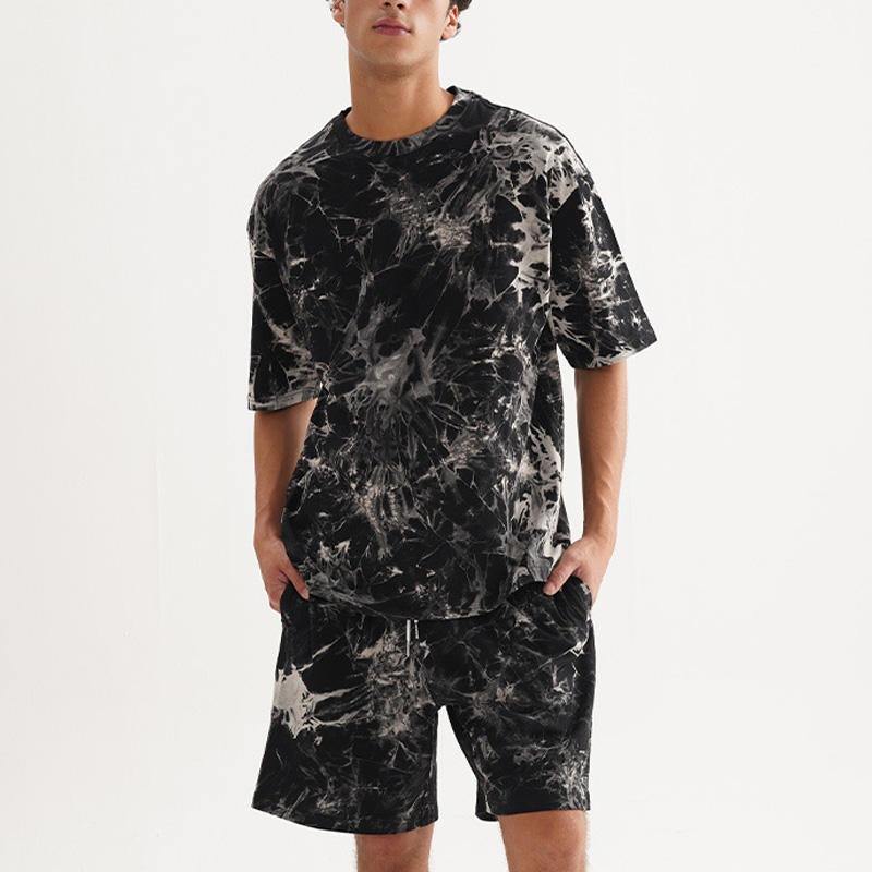 High Quality Breathable Loose Fit Pure Cotton T-shirt Shorts Set Tie Dye Design for Men Teenagers Casual Plus Size for Summer