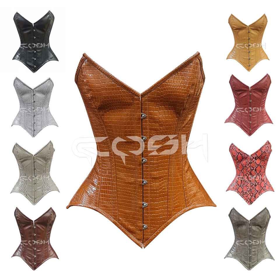 High-Quality Brown Croc-Texture PVC Corset Waist Shaping Overbust Bustier Supplier & Manufacturer