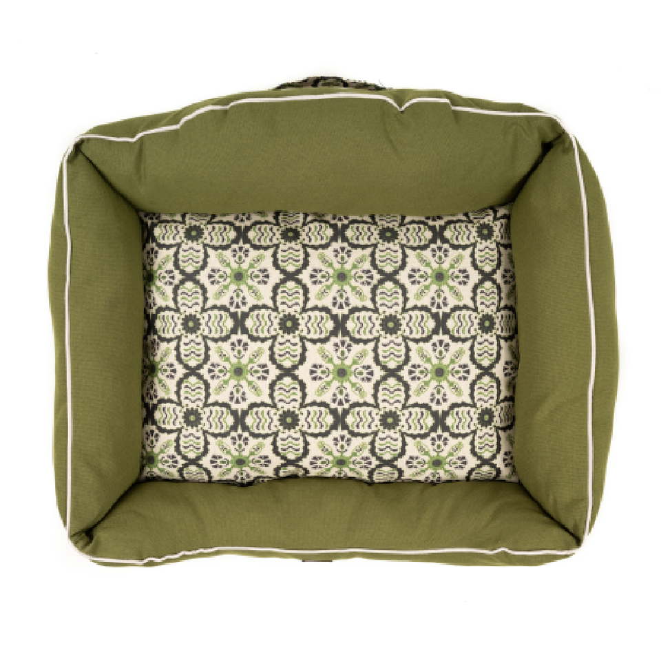 High Quality Bruno Pet Beds with Memory Foam European Style PINCHED EDGE Green Dog Bed Washable Removable Tufted Floral Cover