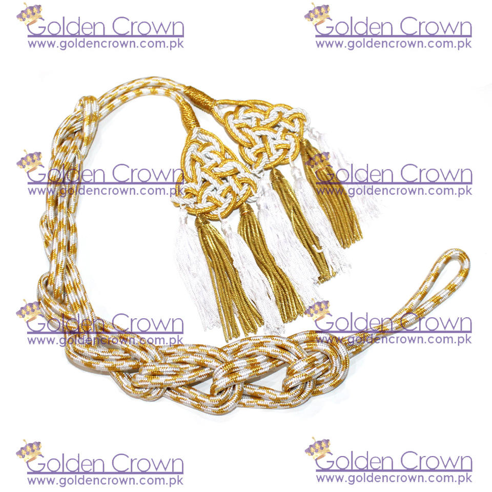High Quality Bullion Cincture with Gold and White Cross Cord Small Bullion Tassels Supplier
