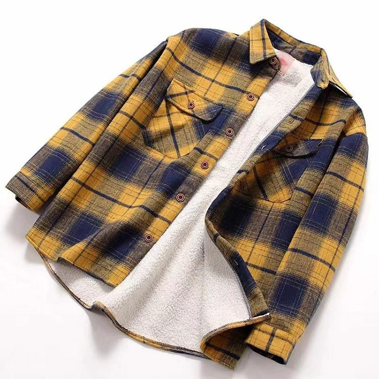 High Quality Button Down Plaid Flannel Shirt Thicken Jacket Long Sleeve Warm up Flannel Jacket for Man, Man Jacket