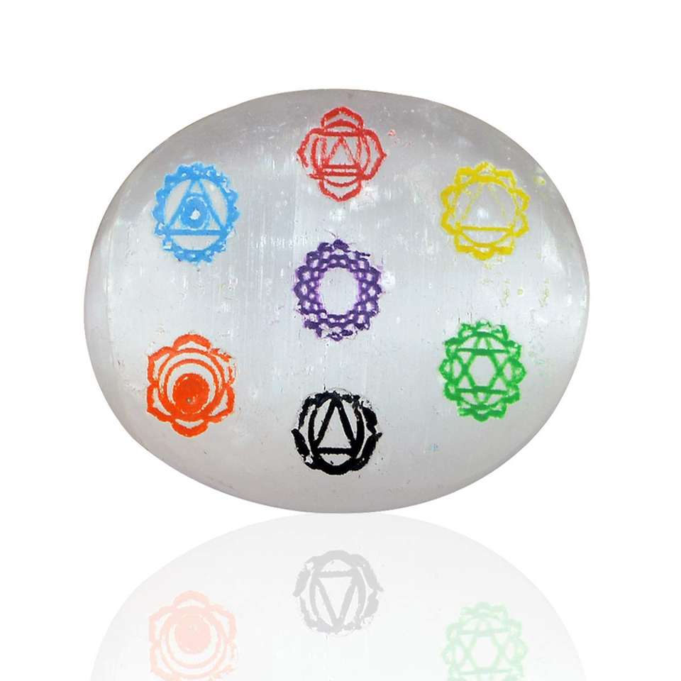 High Quality Carved Selenite Chakra Symbol Charging Plate Reiki Agate Gemstone Massage PalmStone Crystals for Feng Shui Love