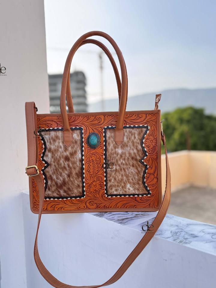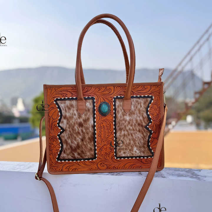 High Quality Carving Tooled Leather Big Size Tote Bag Cowhide Fur Leather Gypsy Boho Vintage Handmade Cross body Shoulder Bag