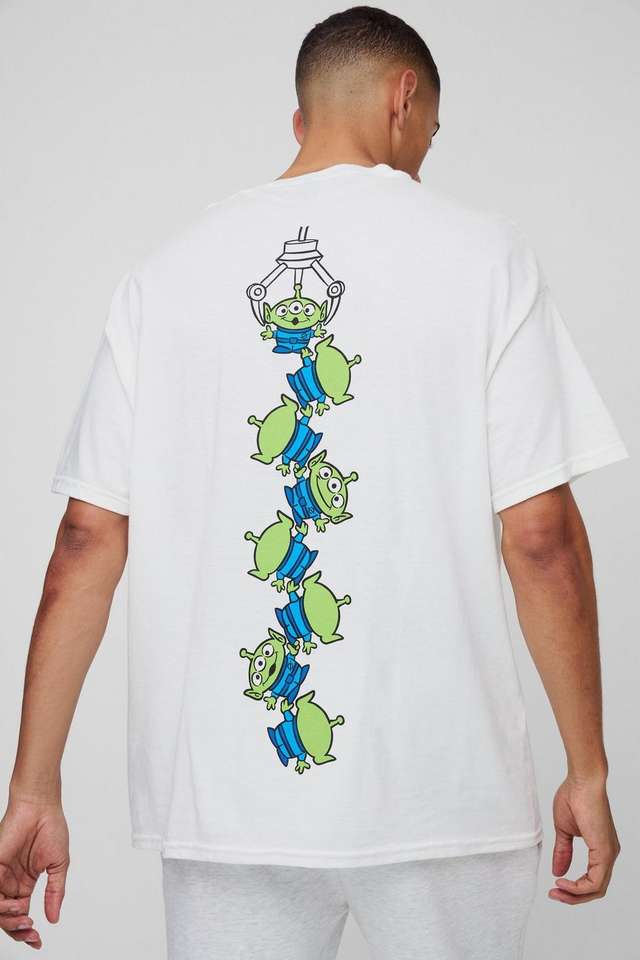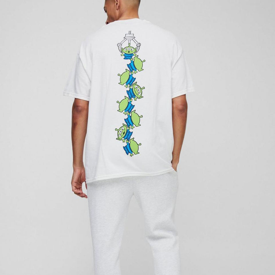 High Quality Casual Fashion White Oversized Pixar Toy Story Aliens License Print T-Shirt Casual Hot Sale Custom Logo Men T-Shirt
