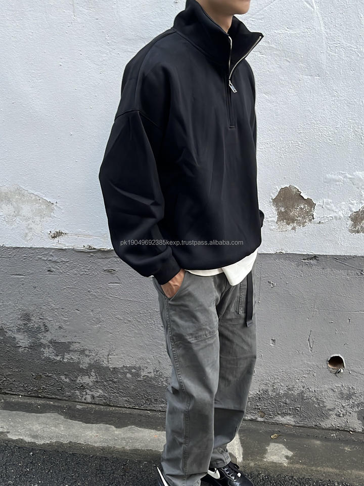 High Quality Casual Hoodies Custom Logo Men Fleece Sweatshirt Quarter 14 Half Zip up High Neck Oversize Pullover Hoodies