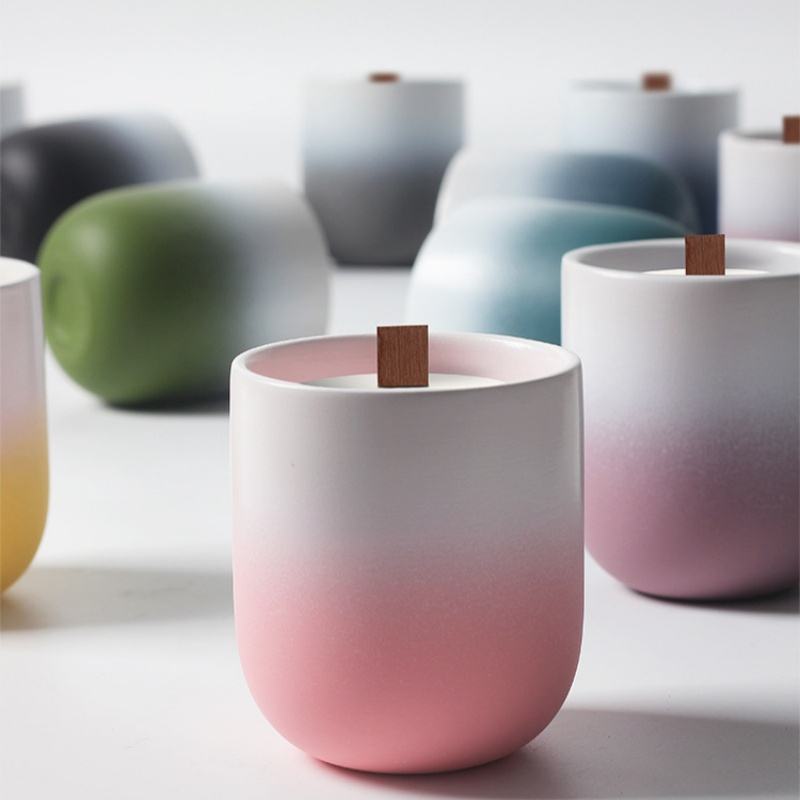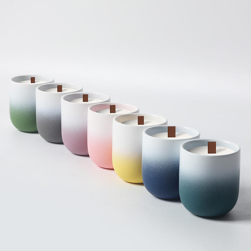 High Quality Ceramic Candle Jar With Wooden Wicks Gradual Glazing for Soy Wax for Wedding Decorations and Gifts