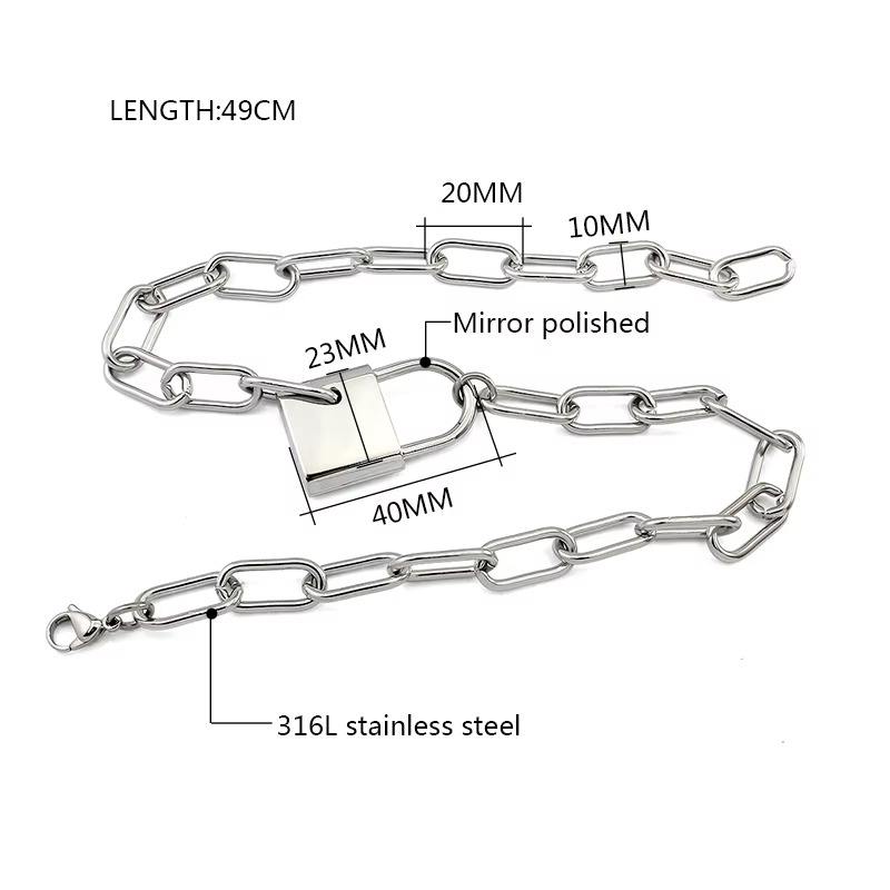 High Quality Chain & Link Sliver Necklace Lock Pendant Stainless Steel Necklace Luxury Wedding Party Jewelry Holiday Gift