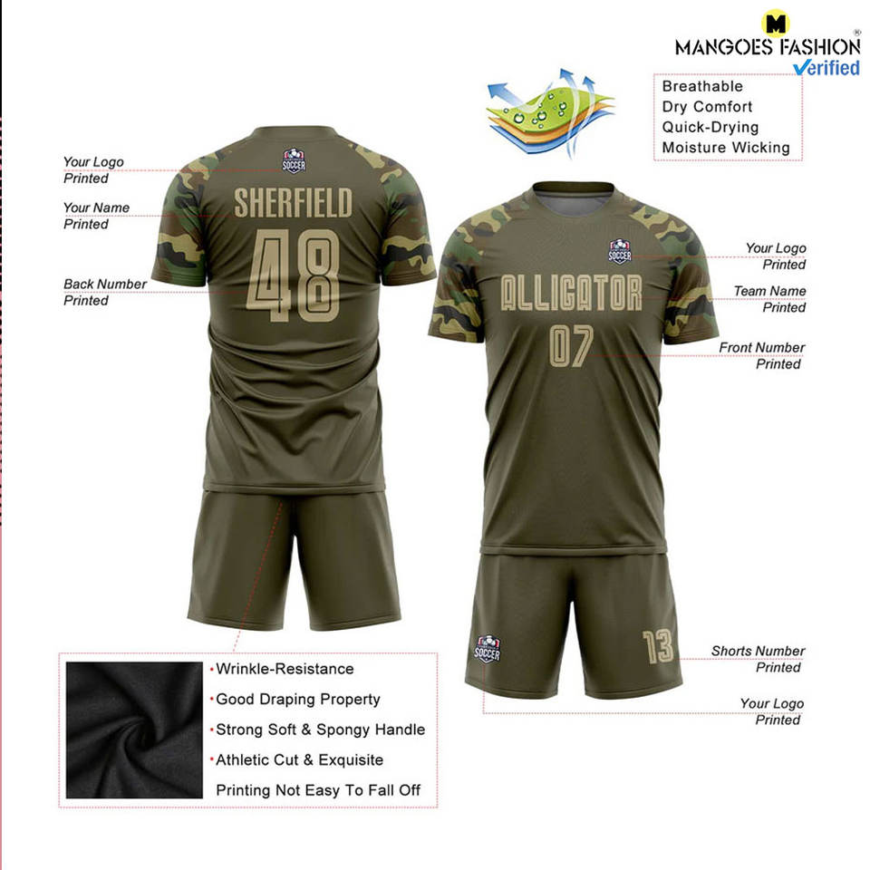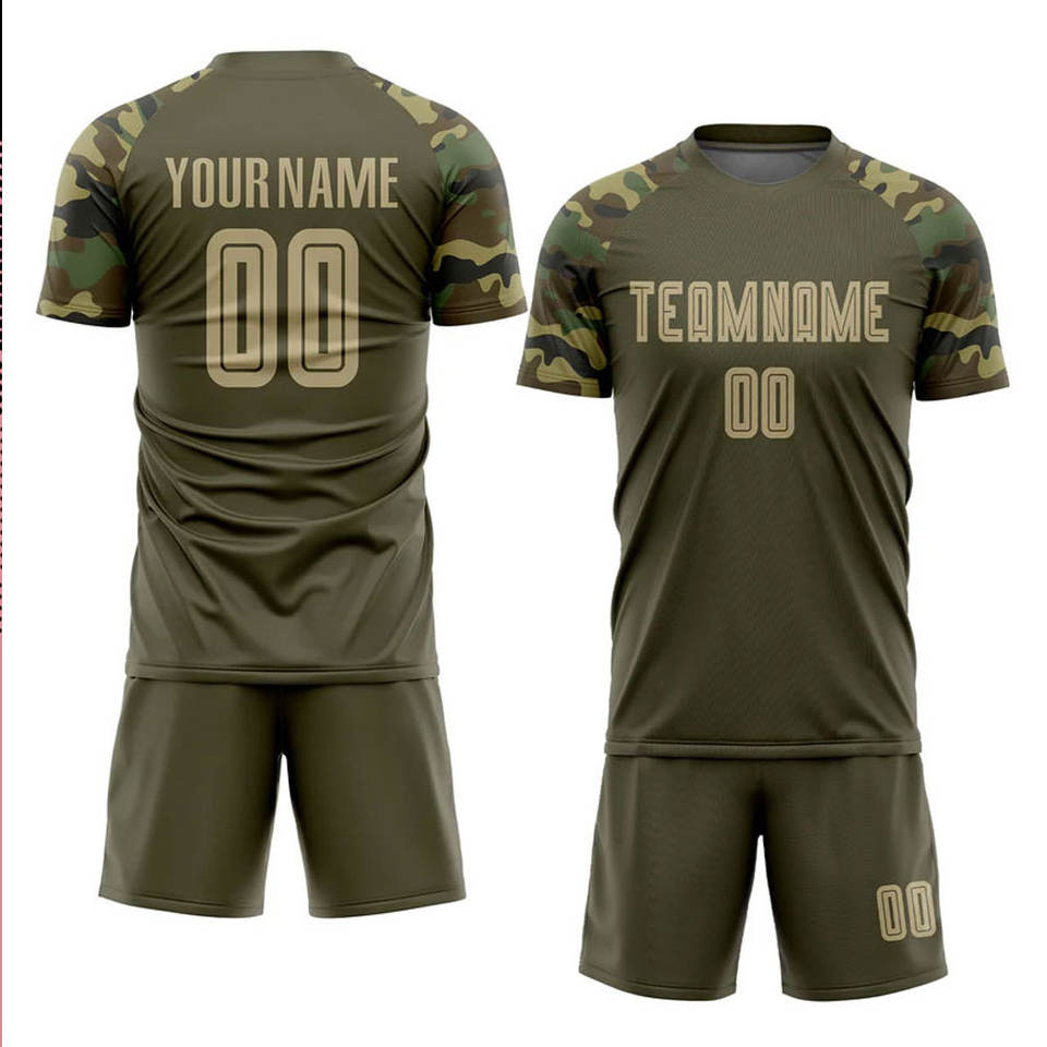 High Quality Cheap Custom Logo Unisex Soccer Uniform Jersey Olive Vegas Gold-Camo Heat-Transfer Printing Salute Service