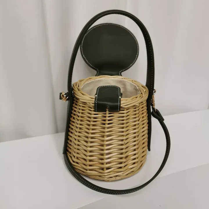 High Quality Cheap Price from Vietnam Summer Rattan Hand Bags Boho Beach Bag Wicker Basket Purse Woven Straw Bucket Bag