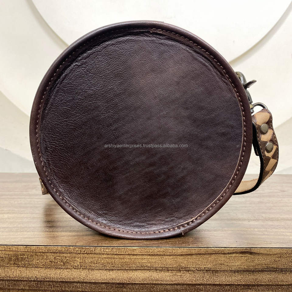 Checkered Design Tooled Cowhide Leather Round Bag