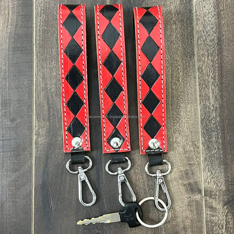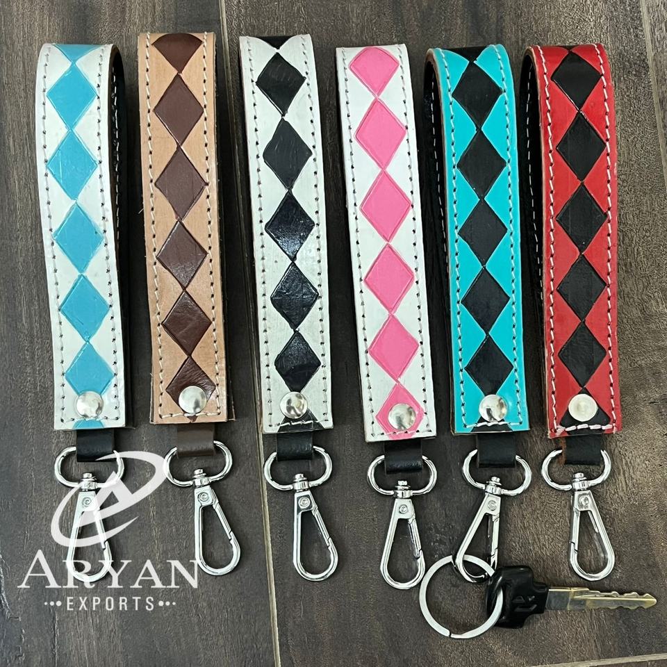 Product Name:Genuine Checkered Leather Wristlet Keychain