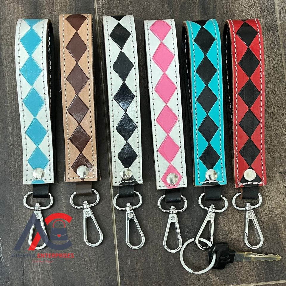 Product name:Genuine Checkered Leather Wristlet Keychain