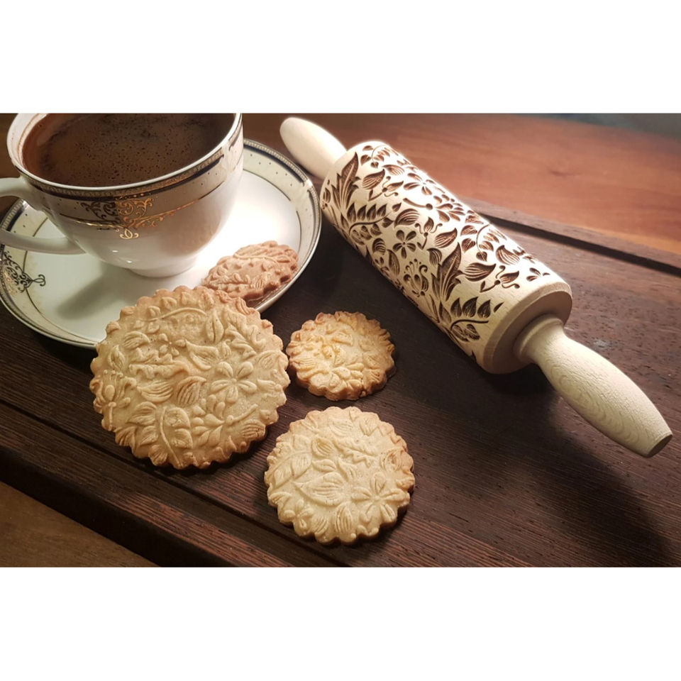 High Quality Christmas Flower Snowflake Pattern Rolling Pin Wood Embossing Roller Ideal for Christmas Dough Embossing
