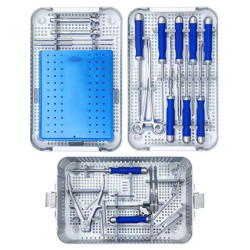 Material medical grade stainless steel, Handle material stainless steel with ergonomic silicone grips, Instrument type orthopedic surgical instrument set, Set contents bone holding forceps retractors elevators screwdrivers drills plates guides and accessories, Finish satin and polished finish, Usage orthopedic procedures fracture fixation bone surgery, Application orthopedic surgery trauma surgery operating room use, Reusable yes