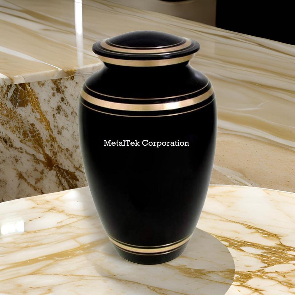 High Quality Classic Black Cremation Urn & Keepsake Golden Ring Wholesale Price Funeral Supplies Memorial Burial Ashes Metal Jar
