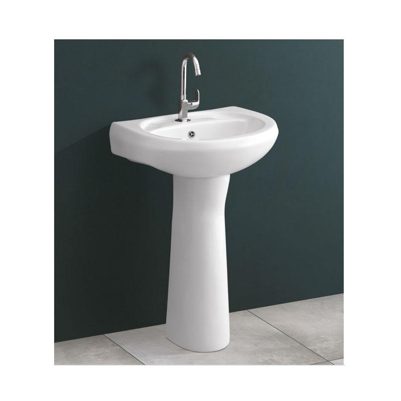 High Quality Classic Ceramic Pedestal Basin Bathroom Sinks Modern-Style Rounded Square Porcelain with Drainer
