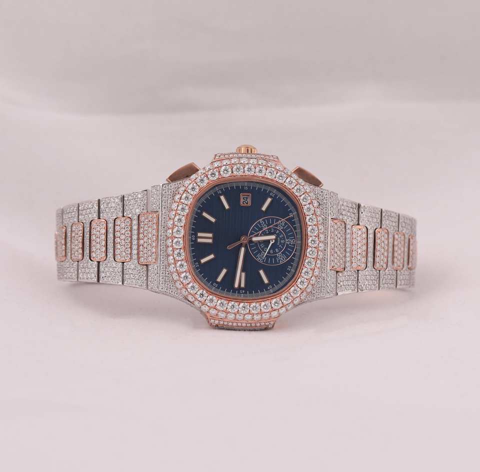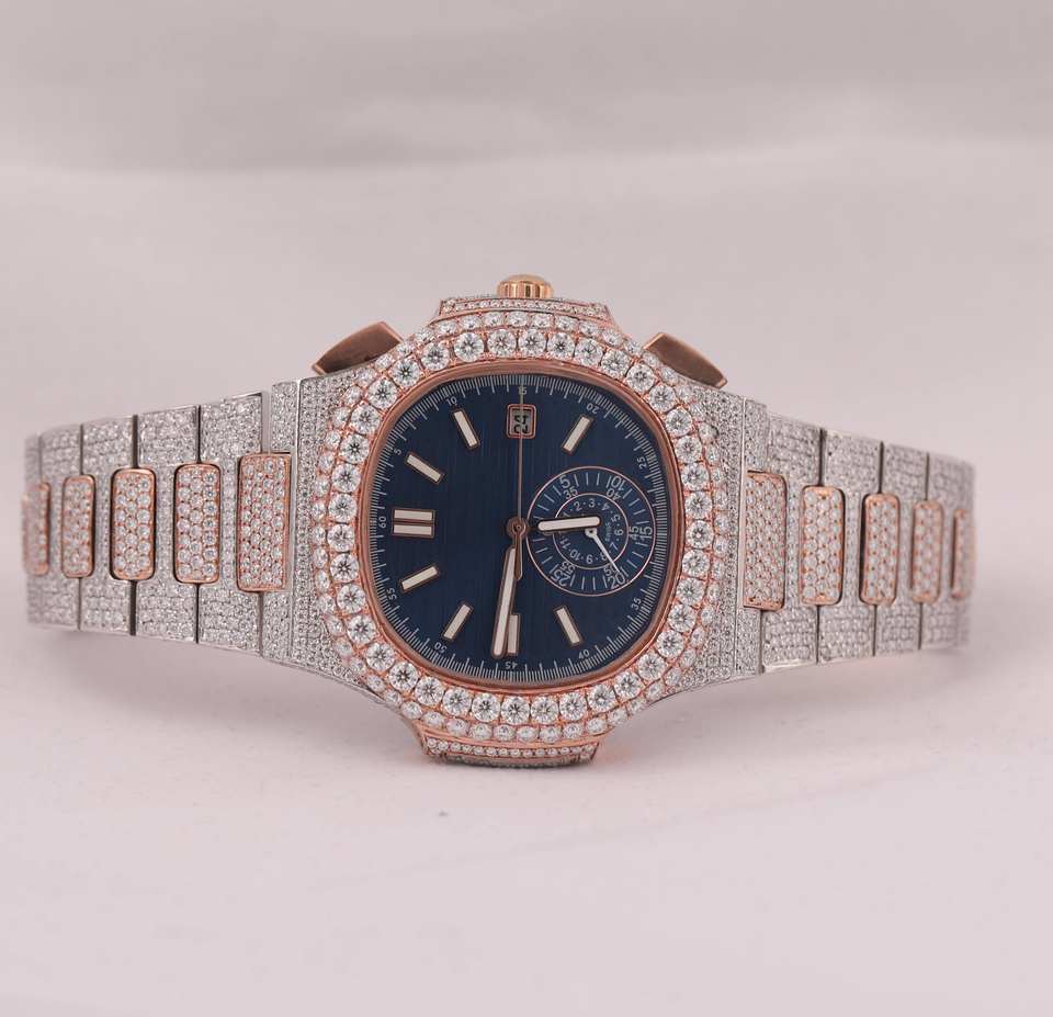 High Quality Classic Dial Iced Out Hiphop Machine VVS Diamond Fashion Quartz Glass Luxury Watch Bust Down,