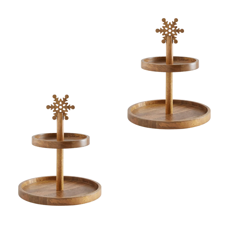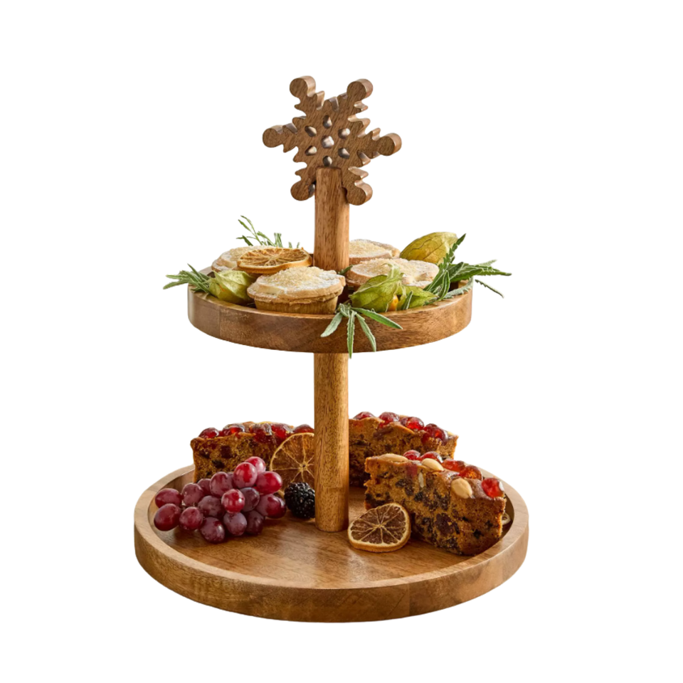 Wood 2 Tier Serving Tray Cake Stand Christmas Decoration