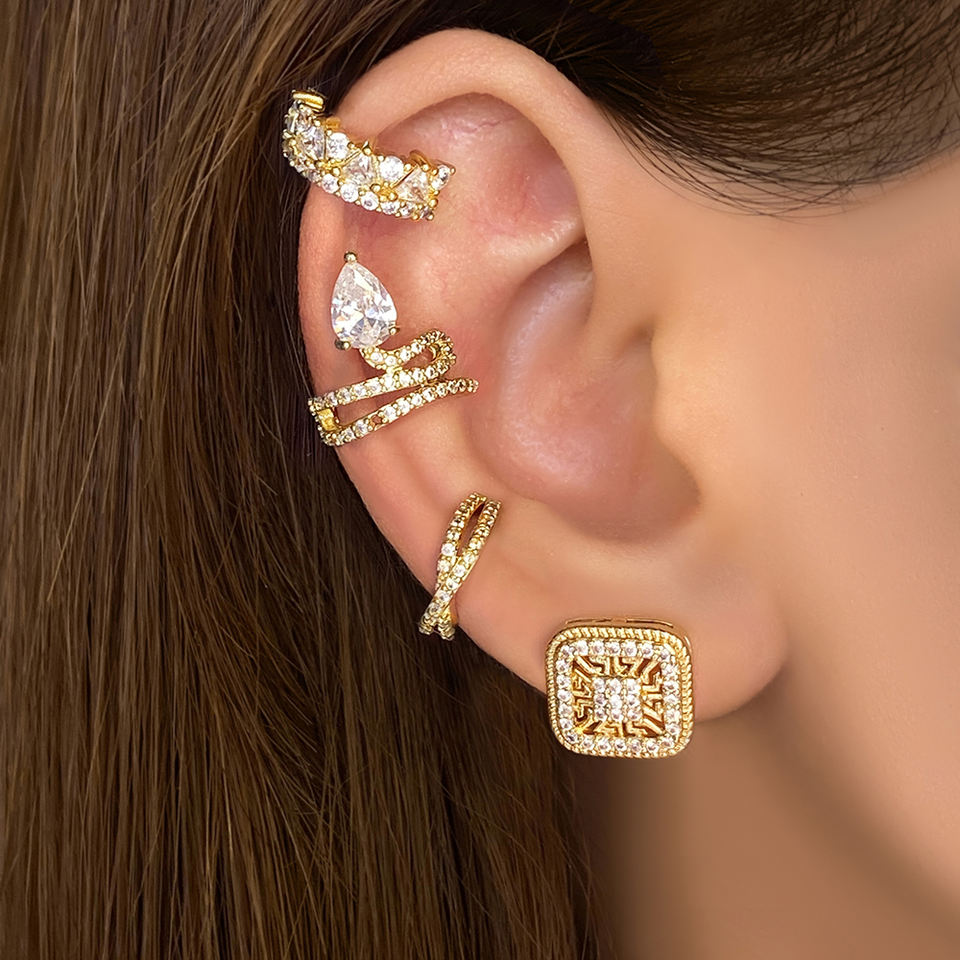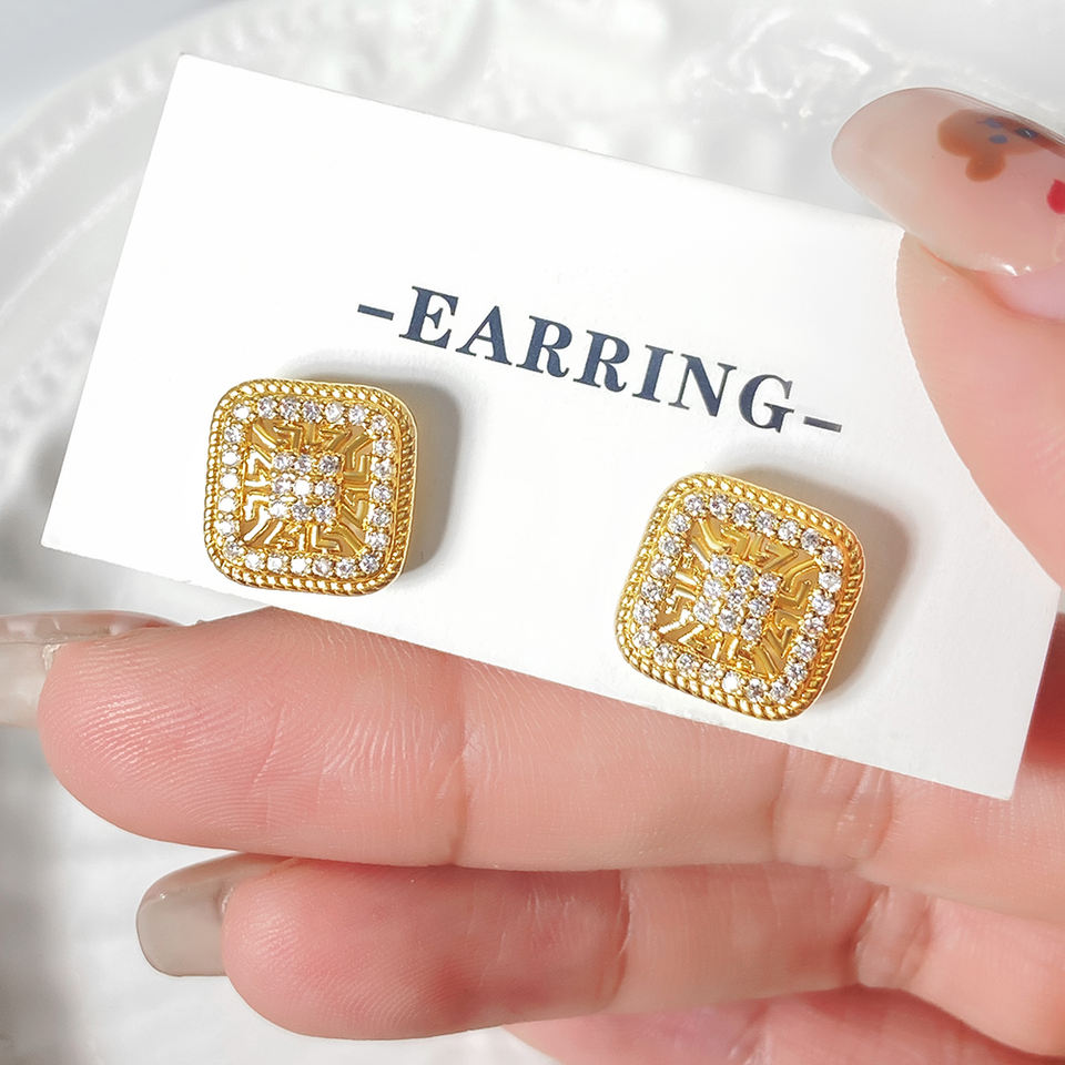 High Quality Classic Geometric Square Iced Out Zircon Brass Gold Plated Lucky Stud Earrings for Women