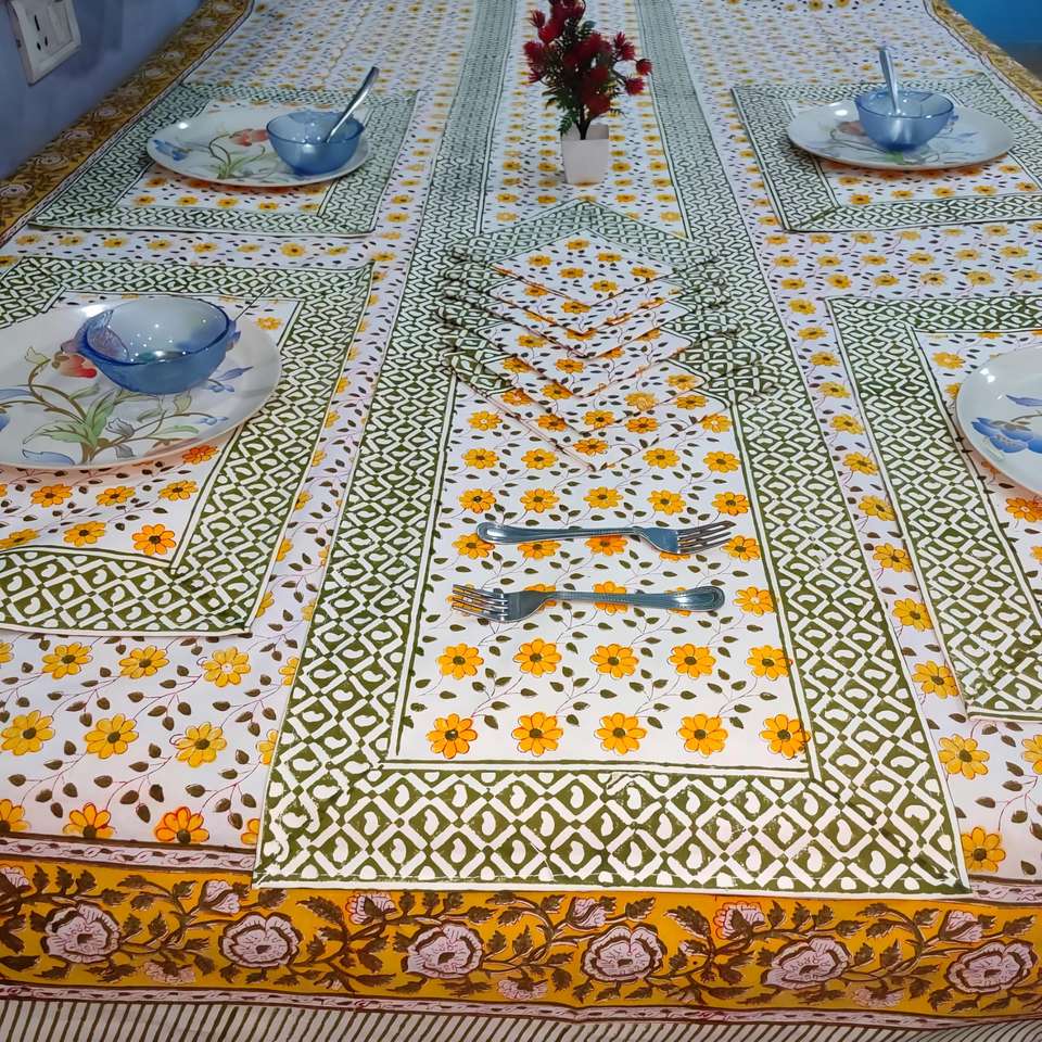 High Quality Classic Style Cotton Rectangular Table Cloth Hand Block Printed for 6 Seater Dining Table Fabric Material