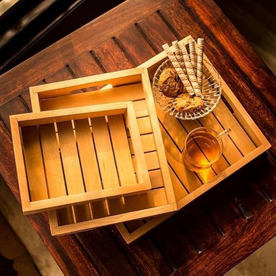 High Quality Classic Wooden Serving Tray Smooth Finish Solid Wood Tray for Kitchen Dining and Table Use For Sale