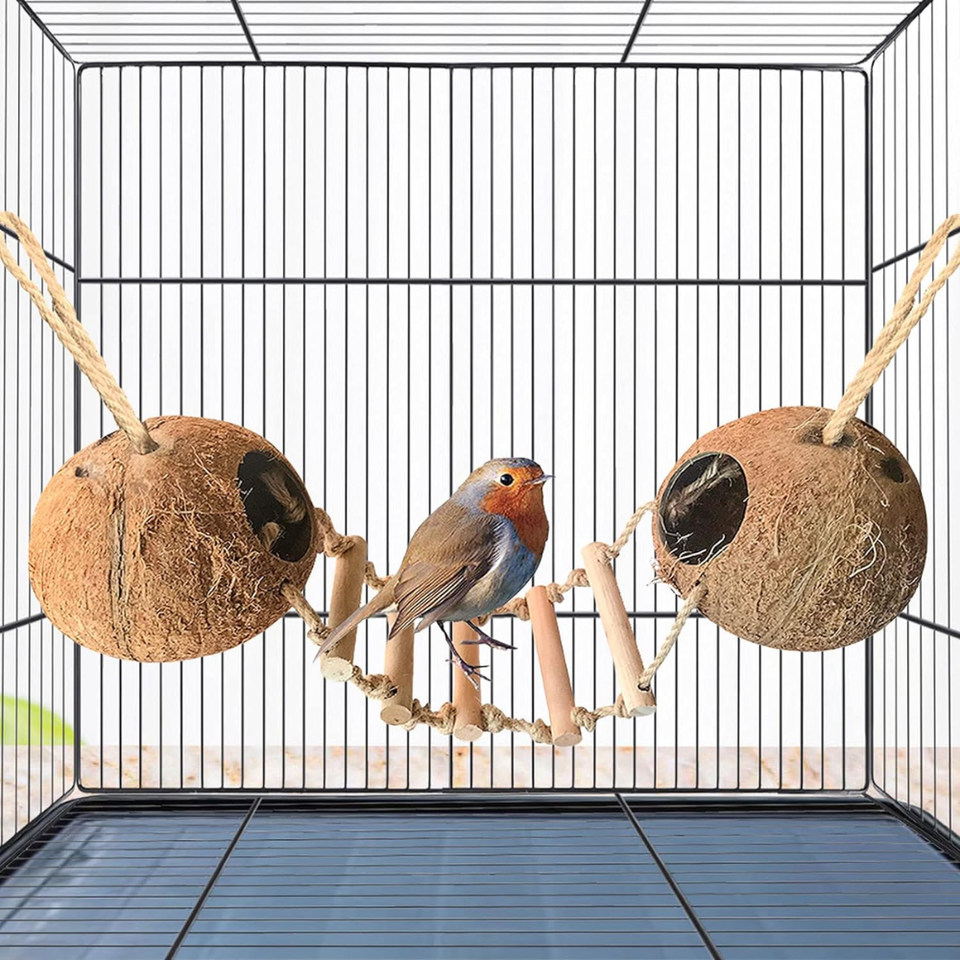 High Quality Coconut Shell Bird Nest House Breathable and Natural Wood with Eco2go Laser Engraved Logo Good Price for Export