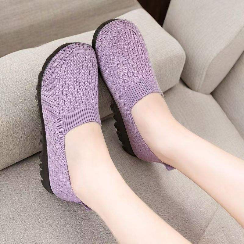 High Quality Colorful Women Trendy Lady Flying Woven Round Toe Flat Shoes Loafers Soft Sole Knit Boat Shoes