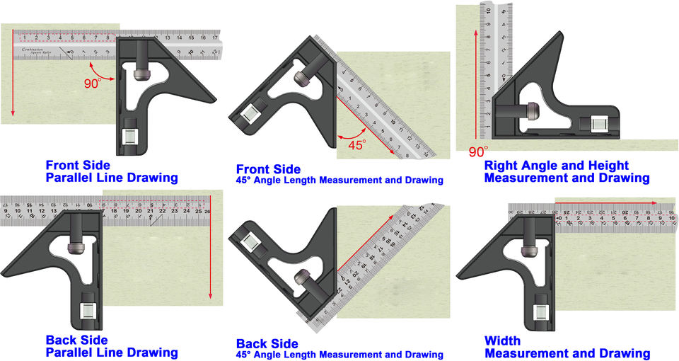 High Quality Combination Square Ruler Stainless Steel With Additional 2 mm Clutch Pencil OEM ODM Taiwan Supplier