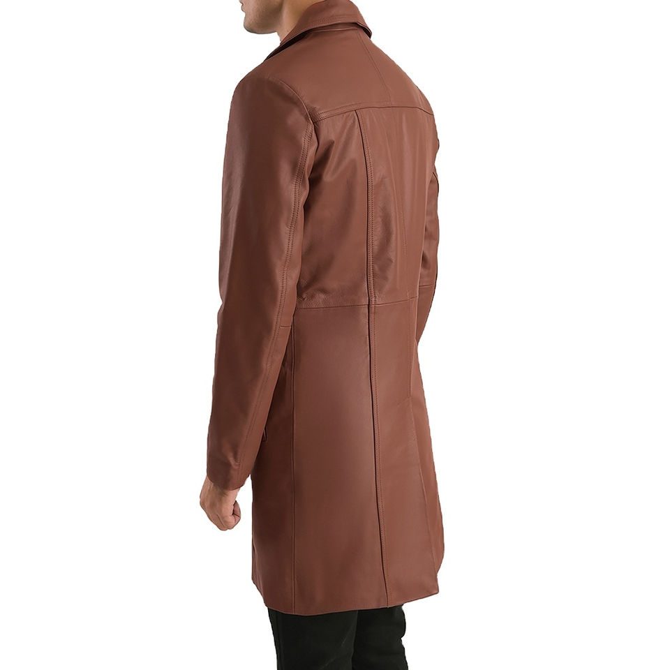 High Quality Comfortable Sheepskin Long Leather Coat for Men Custom Logo and OEM Service Genuine Leather Casual Jacket