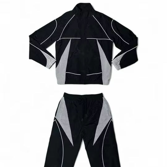 High Quality Unisex Hooded Windproof Stand Zipper Windbreaker Custom Logo Contrast Color Nylon Tracksuit