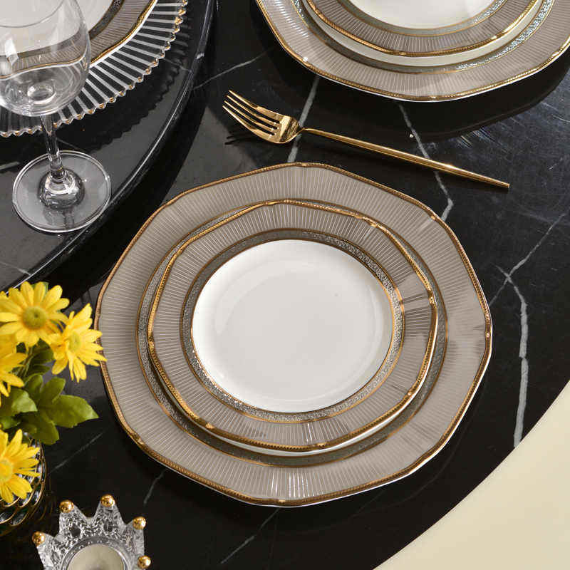 High Quality Control Bowl With Gold Rim Decorative Gold Ceramic Tableware Set Banquet Ceramic Tableware